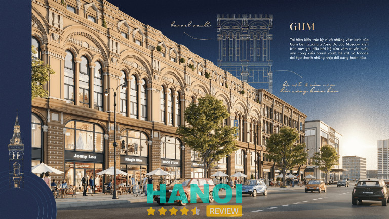 Phân khu Little GUM với 109 căn là phân khu lớn nhất dự án, lấy cảm hứng từ Trung tâm thương mại GUM (ГУМ) nổi tiếng tại Quảng trường Đỏ, Moscow. GUM không chỉ là nơi mua sắm mà còn là biểu tượng văn hóa của nước Nga, nơi kiến trúc cổ điển gặp gỡ sự sầm uất hiện đại.