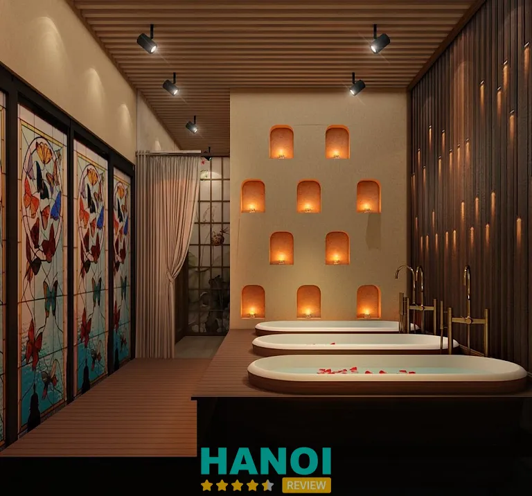 Không gian spa được đánh giá là khá yên tĩnh, sạch sẽ, với phòng massage, phòng gội đầu riêng — giúp đảm bảo sự thư giãn và riêng tư cho khách.