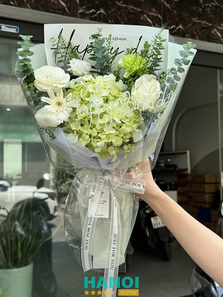 Khách hàng từng đánh giá rằng hoa luôn được chuẩn bị tươi, giữ hình dáng và độ bền hoa lâu hơn sau khi nhận – điều này phản ánh sự chú trọng vào chất lượng sản phẩm bởi tiệm.